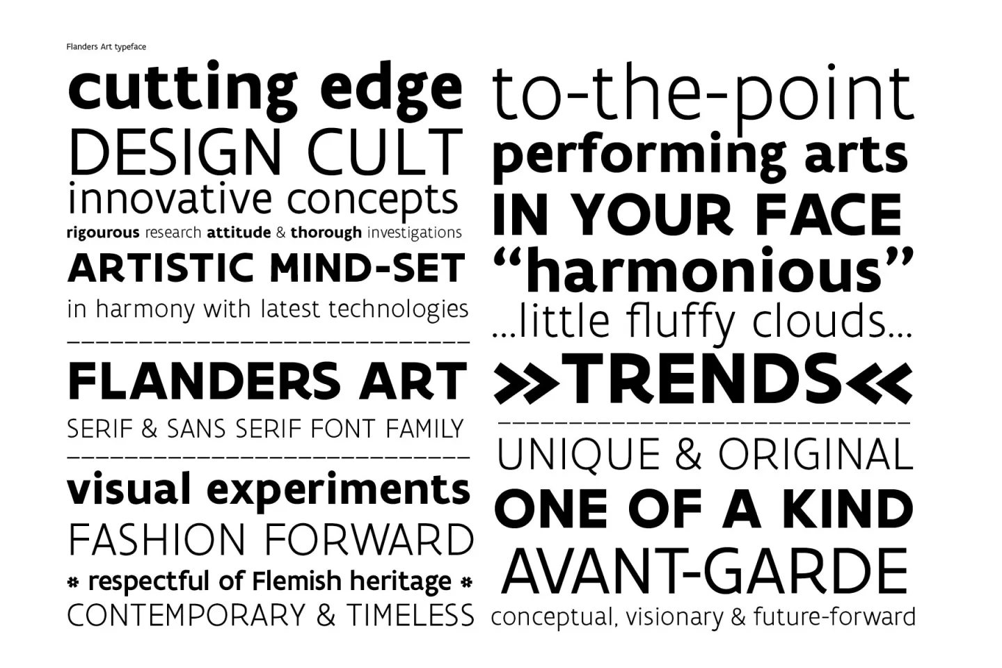 Flanders Art is a sans serif & serif font family, custom designed for the visual identity of the Flemish Government.