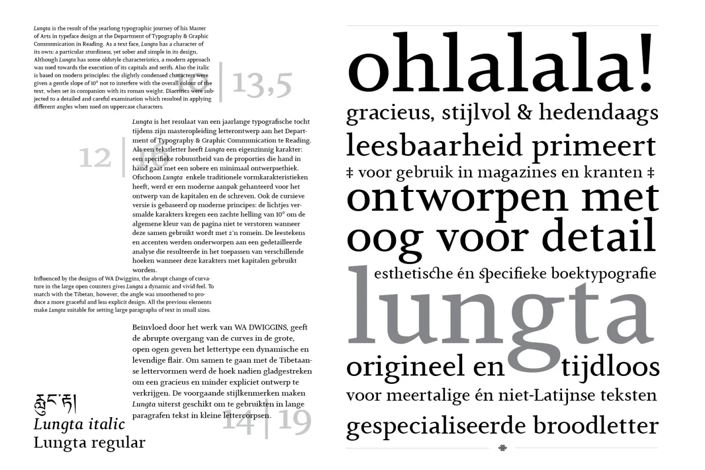 Lungta is the result of a yearlong journey through the amazing world of typeface design at the Department of Typography and Graphic Communication of Reading University.