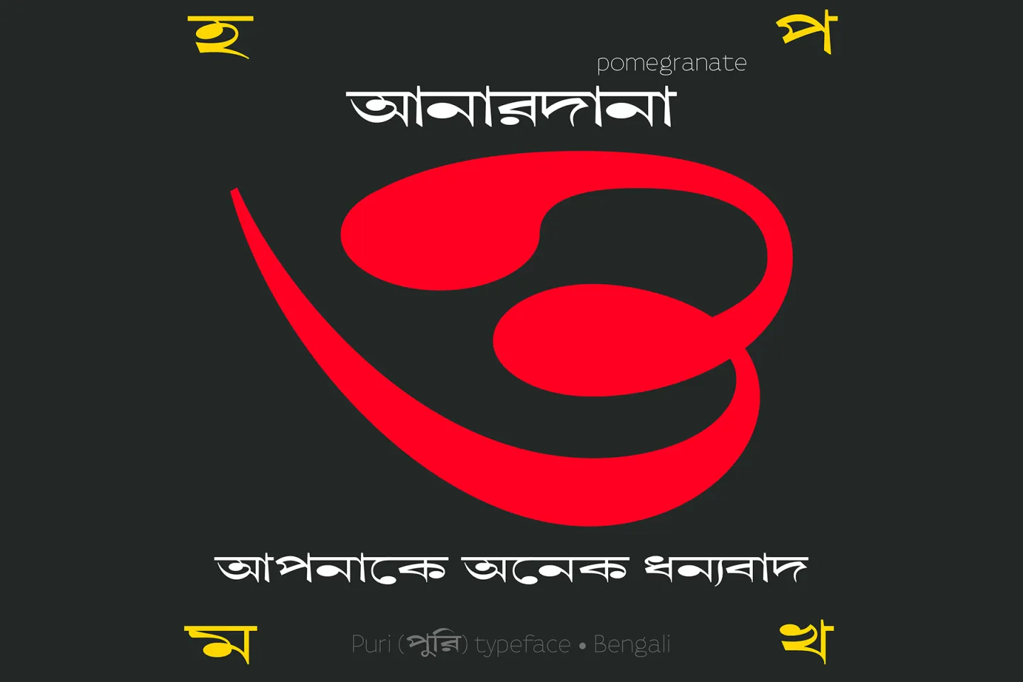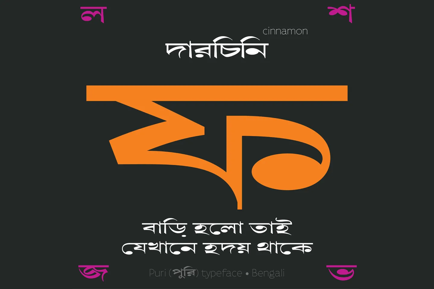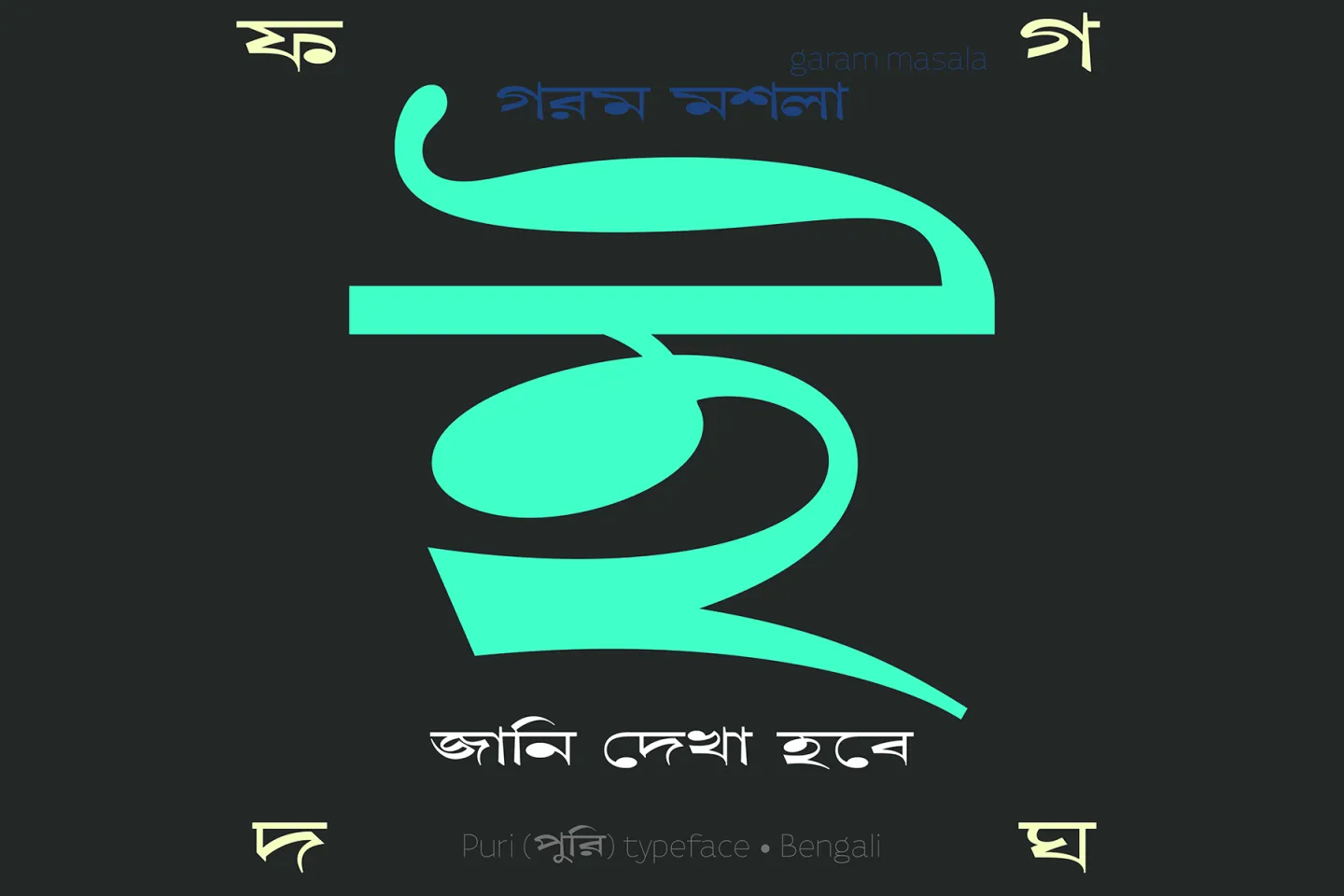 পুরি (‘Puri’), a wide (extended) Bengali display type design revival that I started in 2018, based on Bengali Great Primer Extended (from Chakrabatty, Rakshirt & Co) and Bengali Pica Extended (from Bengal Type Foundry)