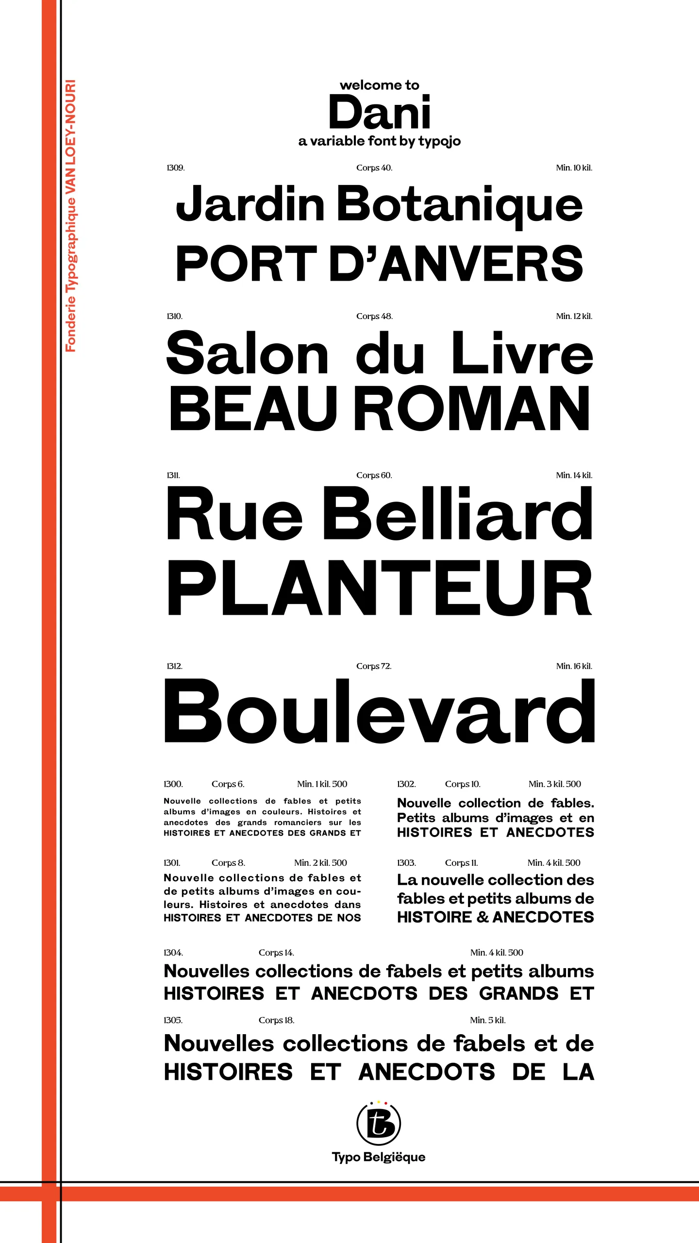 Welcome to Dani, a unique sans serif type revival that originates from the nineteenth-century Brussels-based type foundry of Van Loey-Nouri.